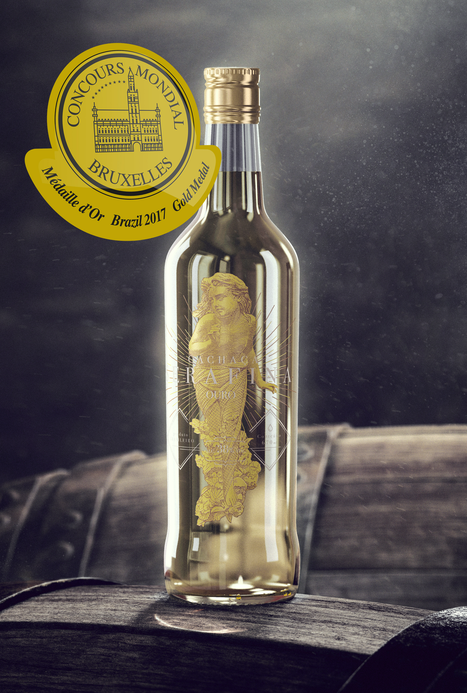 Início > Cachaça Serafina é premiada com medalha de Ouro em importante concurso de destilados > barril-ouro-garrafa